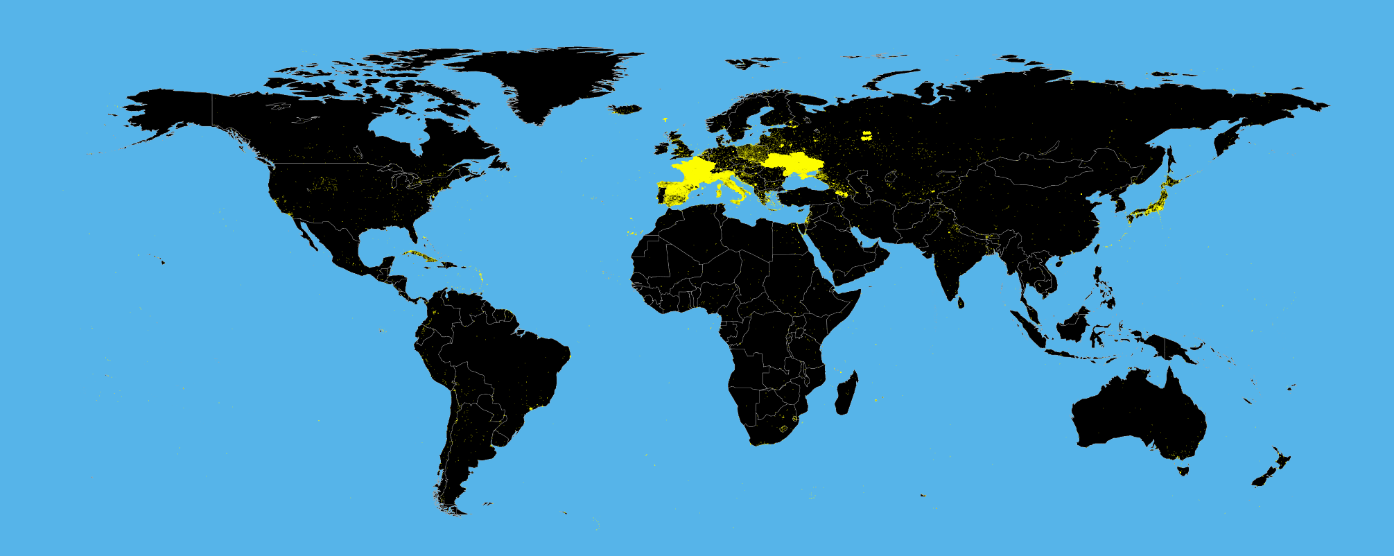 На візуалізаціях геокодованих статей іншомовних вікіпедій можна помітити темну пляму на місці України (приклад, або інший приклад). І це не дивно: в іншомовних Вікіпедіях відчувається дефіцит геокодованих статей з координатами в Україні.