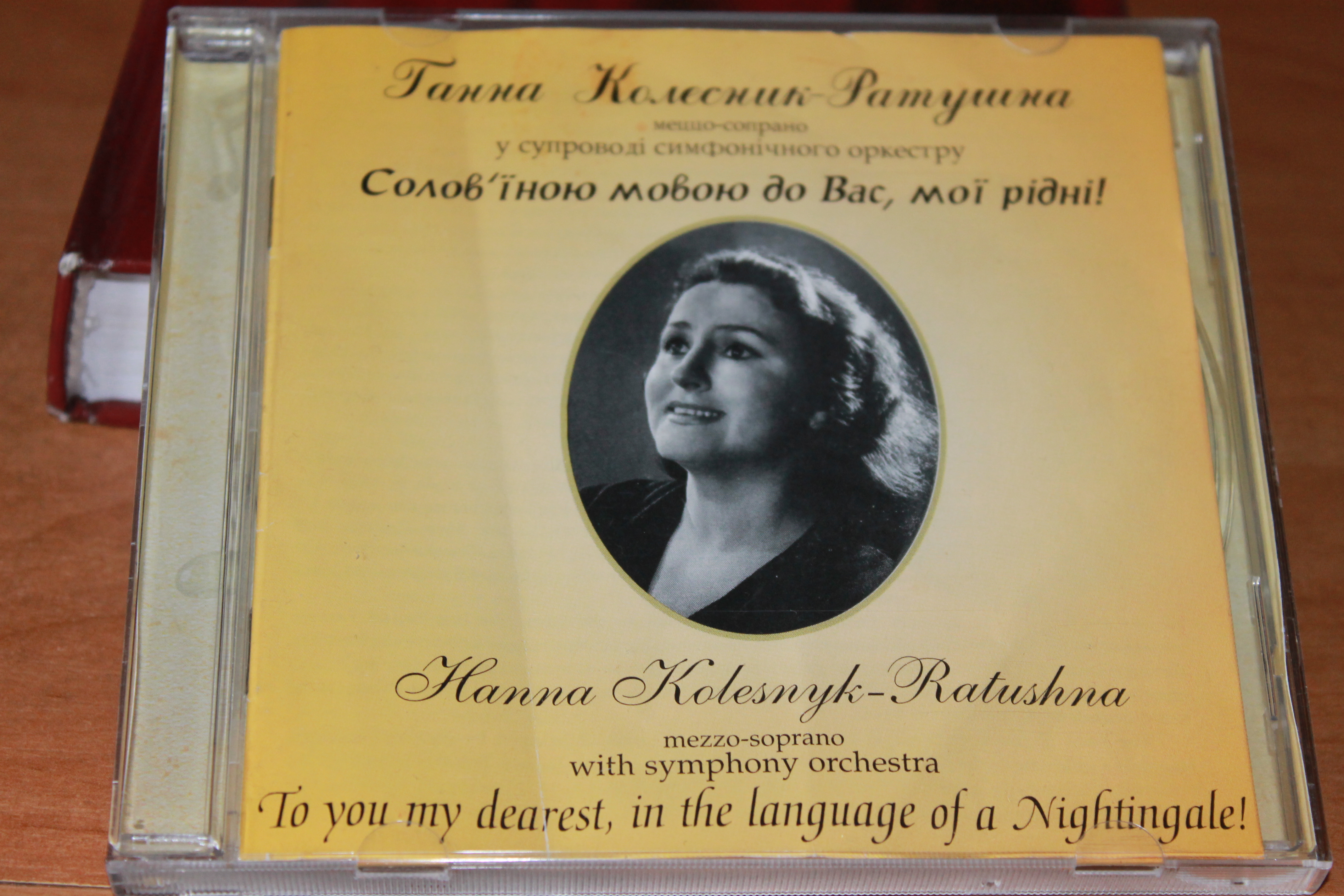 Цей диск став першим з українських компакт-дисків, доступних на умовах вільрної ліцензії. Компакт-диск був записаний в 1995 році в Києві, вокалістка співала у супроводі оркестру Київськї опери під орудою Івана Гамкала, аранжування зробив Володимир Губа. Нове забарвлення у виконанні Ганни Колесник-Ратушної отримують шедеври західно-європейської класики – “Ave Maria” Шуберта, “Елегія” Массне, вокальні твори російських композиторів, зокрема “Полюбила я на печаль свою” С. Рахманінова, а також російські романси – “Очі чорнії“, “Візник не жени так коней” та інші. Виданий компакт-диск був у Канаді в 1997 році, куди співачка емігрувала ще в 1970-ті роки.