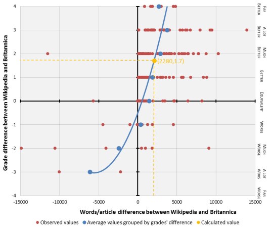 Додамо, що якісна перевага англомовної Вікіпедії над Британікою вперше була засвідчена ще у 2005 році і викликала тоді чимало суперечок. З тих пір, однак, англомовна Вікіпедія суттєво додала і в кількісному і в якісному відношеннях, і тепер подібні результати сприймаються як цілком прогнозовані. На жаль нам поки що невідомі дослідження, що порівнювали би якість української Вікіпедії з її побратимами в паперовому світі. Між тим, таке дослідження було би актуальним і новаторським для дослідження українського соціуму.