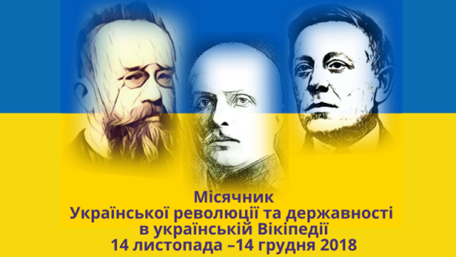 14 листопада в українській Вікіпедії розпочинається місячник написання статей про події Української революції 1917–1921 років. Його метою є створення нових та доповнення вже започаткованих статей, пов’язаних з буремним та складним часом становлення українських державних утворень, їх структури та фінансування, ключових постатей та місць пам’яті, пов’язаних з цієї добою.