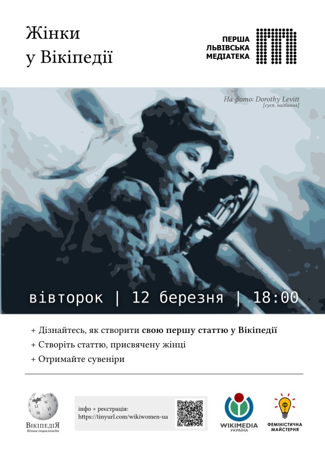 12 березня у Львові всі охочі можуть приєднатися до спільного написання статей про жінок. Феміністична майстерня та Вікімедіа Україна запрошують до Першої львівської медіатеки збільшити інформаційну присутність жінок у Вікіпедії.