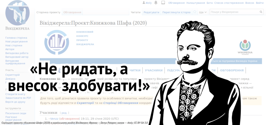В українському проєкті онлайн-бібліотеки Вікіджерела до 31 травня триває «Книжкова Шафа». Від початку конкурсу до нього долучилися уже півтора десятка людей, спробуйте і ви.