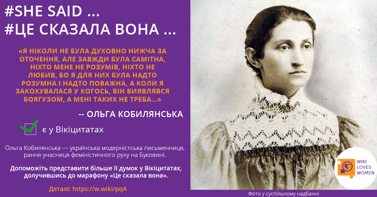 10—24 грудня в українських Вікіцитатах, одному з проєктів Вікімедіа, проходить марафон «Це сказала вона», присвячений тому, щоб наповнити Вікіцитати висловлюваннями видатних жінок. Українська акція проходить в межах міжнародної кампанії #SheSaid, яка вже відбулась у Вікіцитатах італійською, французькою, іспанською, сербською мовами.