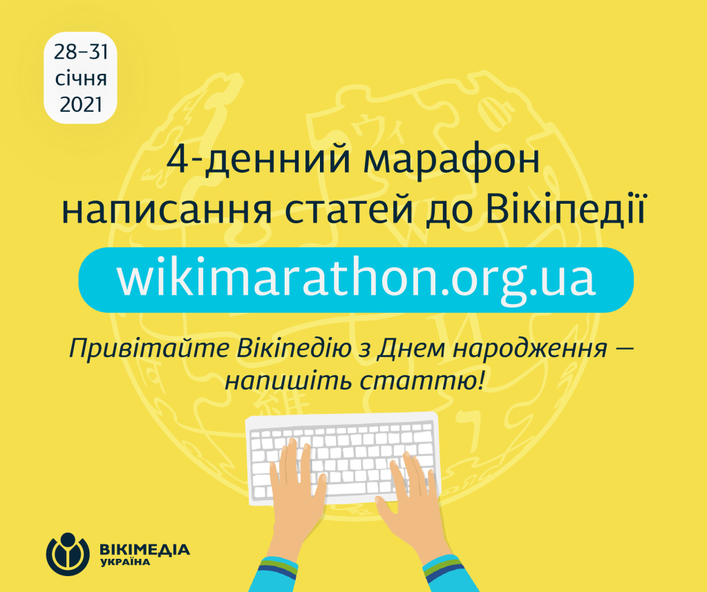 28–31 січня ГО «Вікімедіа Україна» вже увосьме запрошує до марафону з наповнення українськомовного розділу Вікіпедії рекордною кількістю нових статей. Участь можуть взяти всі охочі.
