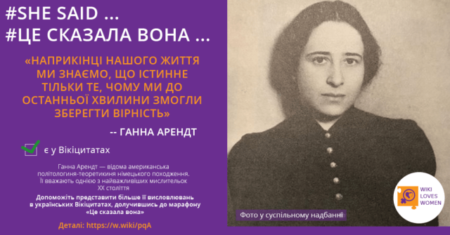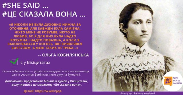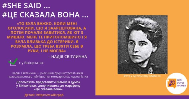 Сповіщення: Долучайтеся до марафону «Це сказала вона» у Вікіцитатах | Вікімедіа Україна