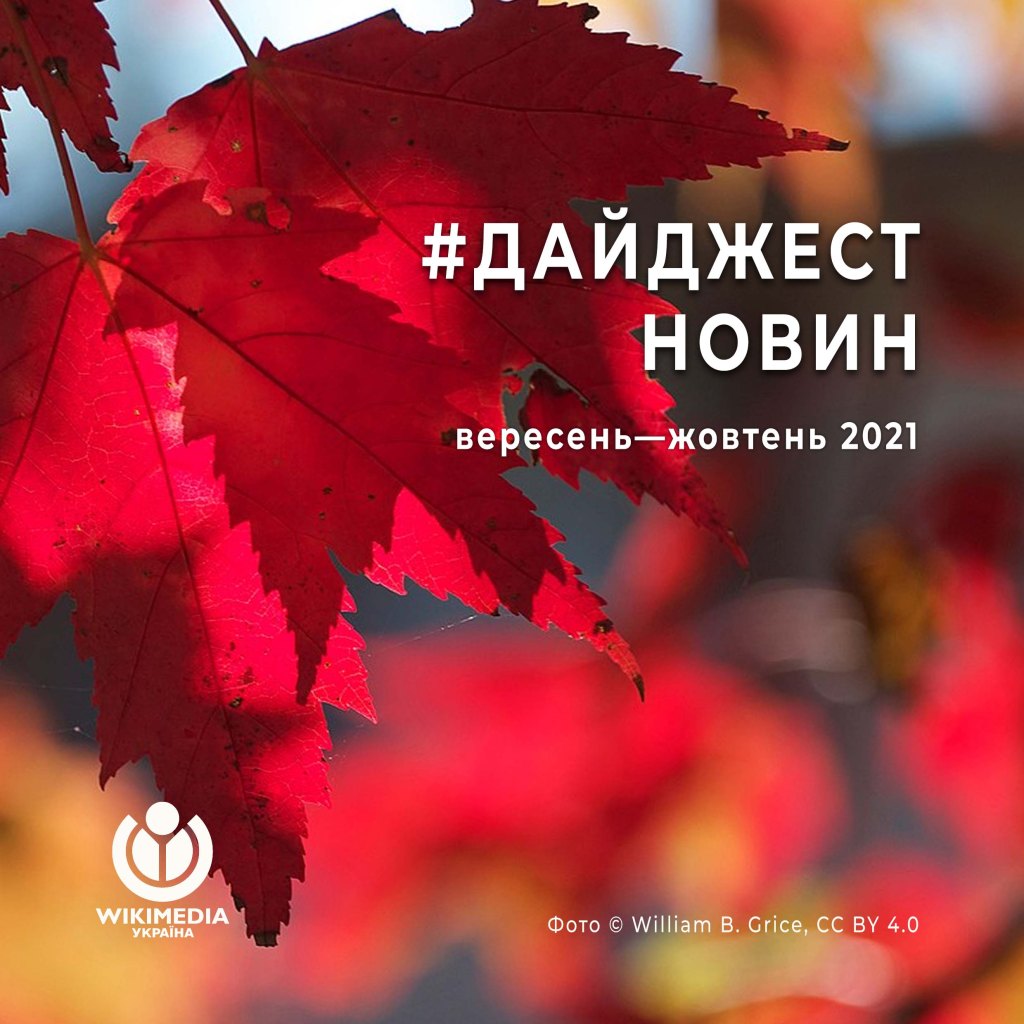 Про основні новини з життя вікімедійної спільноти та нові можливості традиційно розповідає ГО «Вікімедіа Україна» у своєму дайджесті за вересень—жовтень 2021 року.