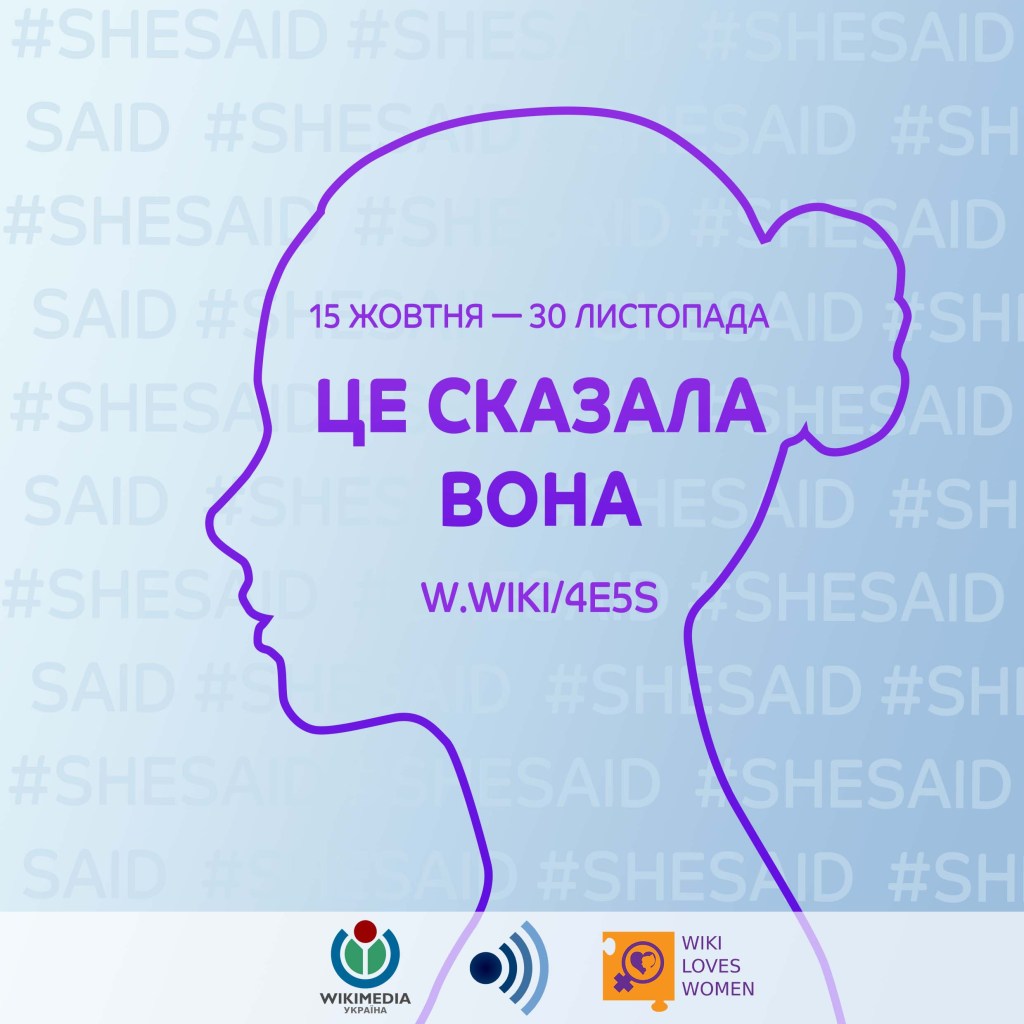 15 жовтня — 30 листопада 2021 року в межах міжнародної кампанії #SheSaid в українських Вікіцитатах вдруге проходить марафон «Це сказала вона». Він присвячений створенню і покращенню підбірок цитат видатних жінок, долучитися можуть всі охочі.