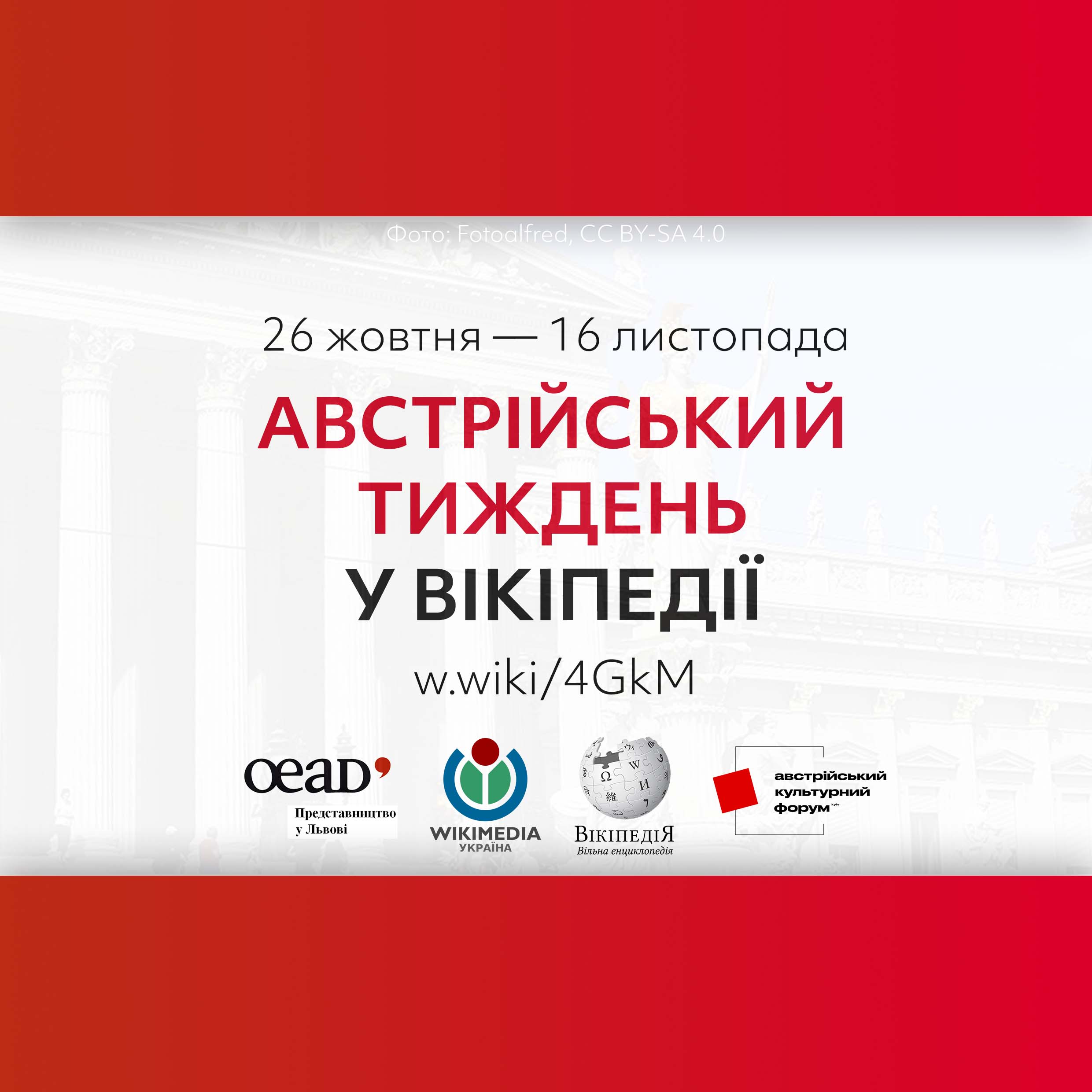 З 26 жовтня до 16 листопада пройде другий за час існування української Вікіпедії Австрійський тиждень. Основне завдання акції — збільшити кількість якісних статей, присвячених Австрії у всіх вимірах життя та минулого в українській Вікіпедії.