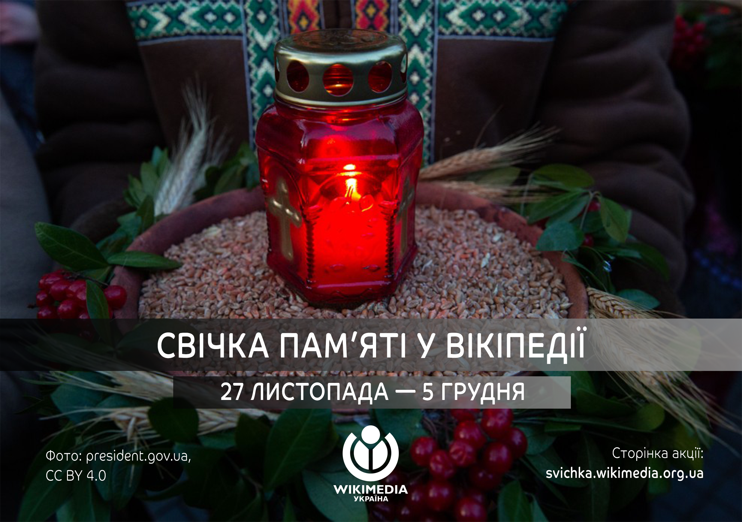 З 27 листопада по 5 грудня у Вікіпедії та сестринських вікіпроєктах пройде щорічна акція «Свічка пам’яті у Вікіпедії» зі створення та покращення статей про Голодомор 1932—1933 років.