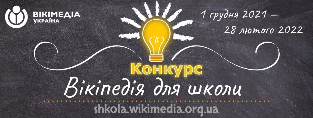 З 1 грудня 2021 до 28 лютого 2022 року в українській Вікіпедії пройде щорічний конкурс статей «Вікіпедія для школи». До участі запрошуємо шкільних вчителів, університетських викладачів та всіх охочих.