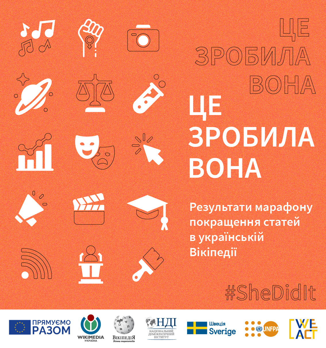 У межах марафону «Це зробила вона» організатори запрошували усіх охочих покращити наявні гасла про жінок — оновити інформацію, навести нові авторитетні джерела чи просто покращити стиль статті.