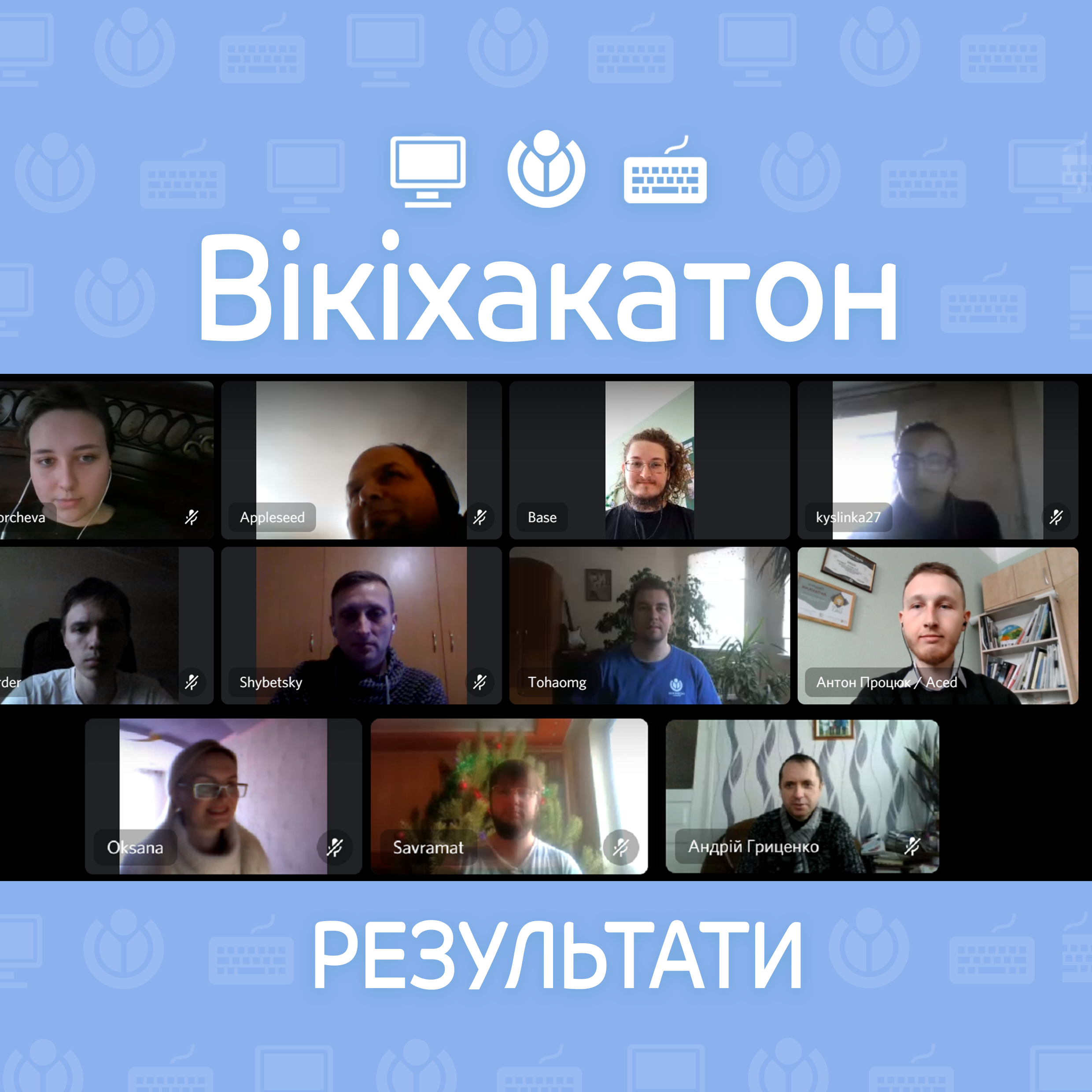 Ми провели хакатон через Discord. Це платформа, яку спільнота Вікіпедії уже використовує для неформальних онлайнових вікічетвергів — і яка дозволяє зручно поєднувати спілкування текстом, голосом і через відео. Також в суботу ввечері охочі учасники й учасниці з Києва зустрілися наживо, щоб спільно повечеряти і обмінятися враженнями з першого дня.