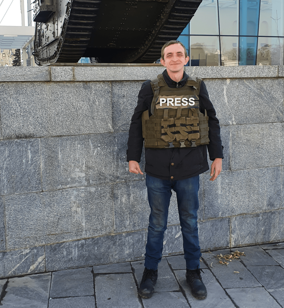 Цю роботу Сергій виконує як журналіст і водночас допомагає українським правоохоронним органам. Він також пише щоденні хроніки атаки на Харків, які волонтери згодом перекладають іншими мовами.