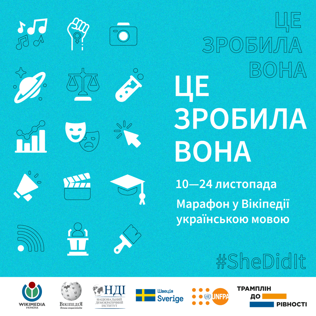 Із 10 до 24 листопада в україномовному розділі Вікіпедії вчергове пройде щорічний марафон «Це зробила вона», присвячений створенню та покращенню енциклопедичних статей про жінок. Усі охочі можуть долучитися та удосконалити Вікіпедію, збагативши її інформацією про життя і досягнення видатних жінок.