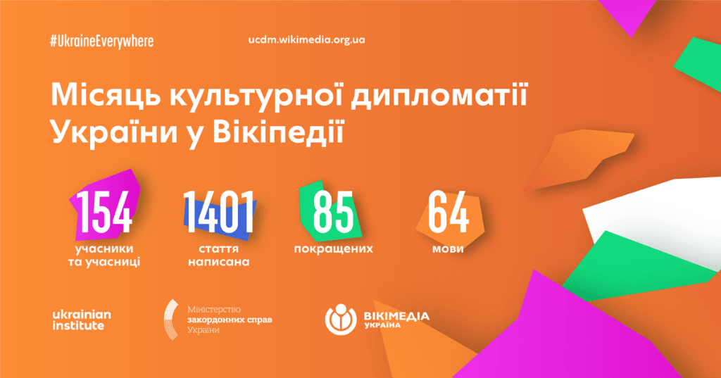 «Місяць культурної дипломатії України» — ініціатива, присвячена відомим українським митцям кіно, музики, літератури, архітектури, дизайну, які зробили вагомий внесок у світову культуру. А також культурним феноменам — від мемів до символів незламності. Проєкт спільно організували ГО «Вікімедіа Україна», Український Інститут та Міністерство закордонних справ України.