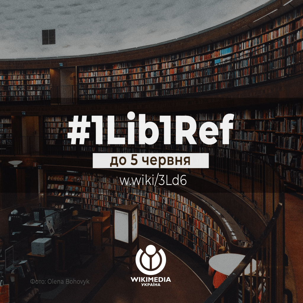 З 15 травня по 5 червня 2023 року українські бібліотекарі, бібліотекарки та всі охочі можуть взяти участь у міжнародній акції #1Lib1Ref, метою якої є наповнити Вікіпедію авторитетними джерелами.