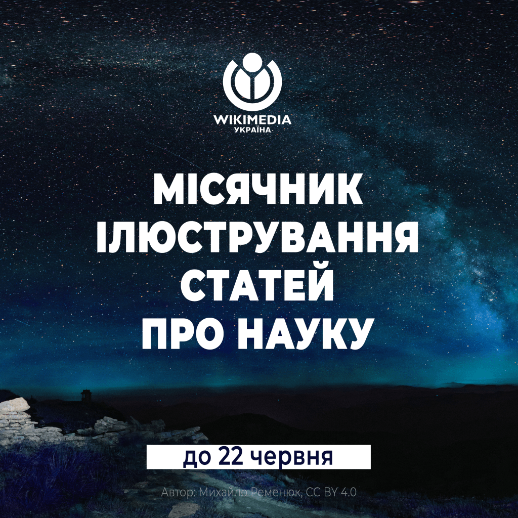 Сьогодні розпочався Місячник ілюстрування статей про науку, ця тематична кампанія триватиме до 22 червня. Її мета — проілюструвати Вікіпедію та Вікідані світлинами, поданими на український етап Конкурсу наукових зображень.