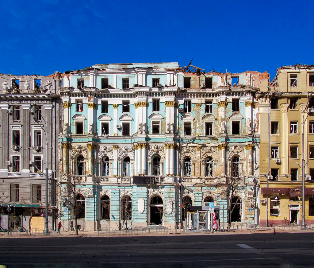 Історична будівля у Харкові після влучання російської ракети — світлина, подана на спеціальну номінацію «Війна руйнує пам’ятки» (Михайло Тітаренко, CC BY-SA 4.0)