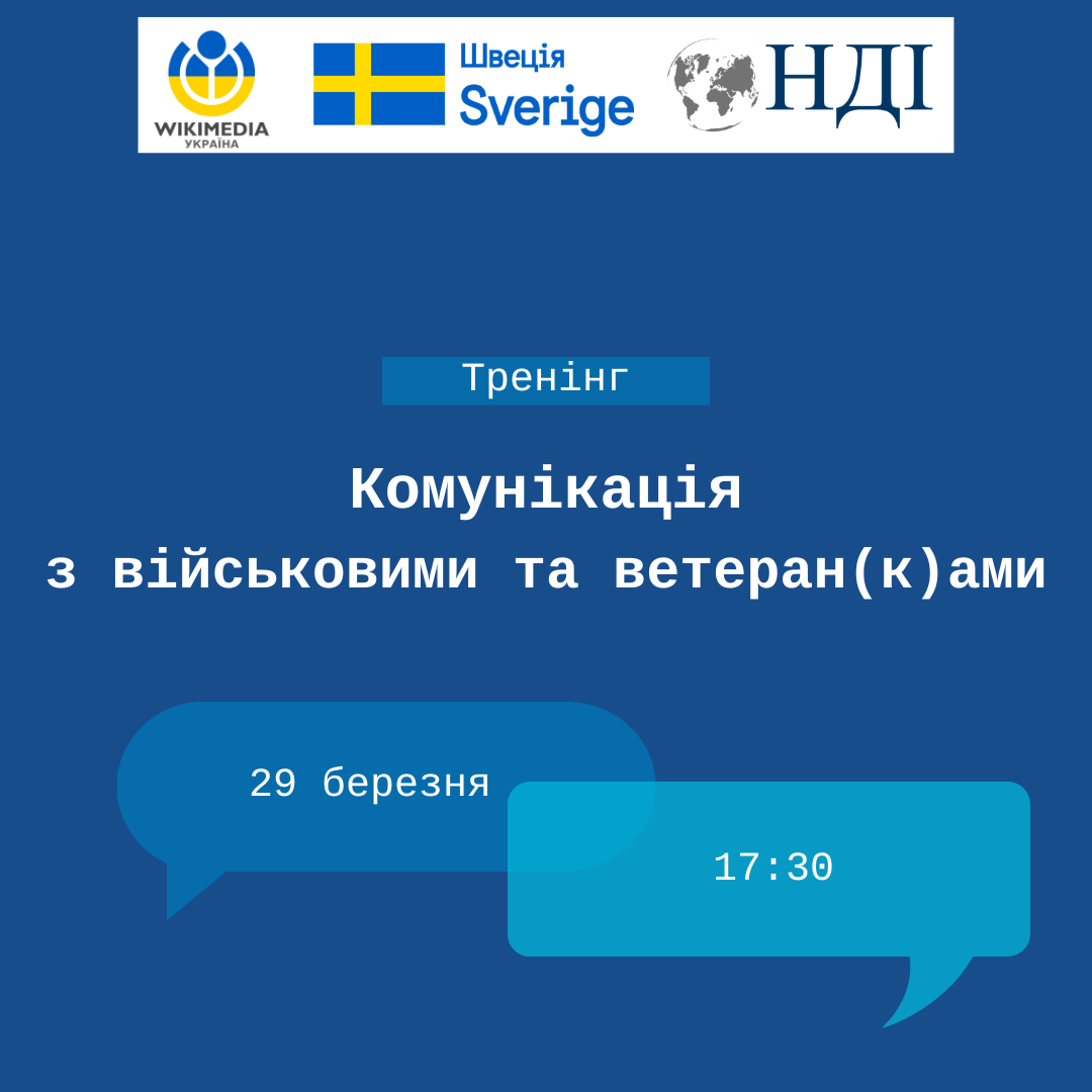 Тренінг організовують ГО «Вікімедіа Україна» та Національний Демократичний Інститут (НДІ) за підтримки Швеції. Ця подія є частиною програми «Тренінги для вікіспільноти» ГО «Вікімедіа Україна».