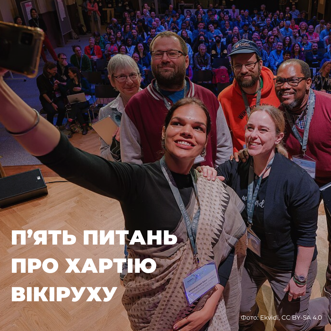 У цьому дописі координатор програм «Вікімедіа Україна» Антон Процюк коротко відповідає на п’ять основних питань про Хартію: що це таке, чому вона потрібна і як долучитися до її формування.