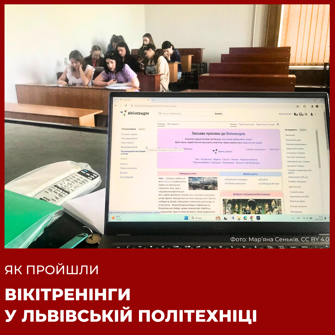 До цього 30 березня Марія Сеньків також провела тренінг для студентів(-ок) заочної форми навчання кафедри туризму. Мета — поглибити знання з навчальних дисциплін шляхом редагування статей у Вікіпедії та Вікімандрах.