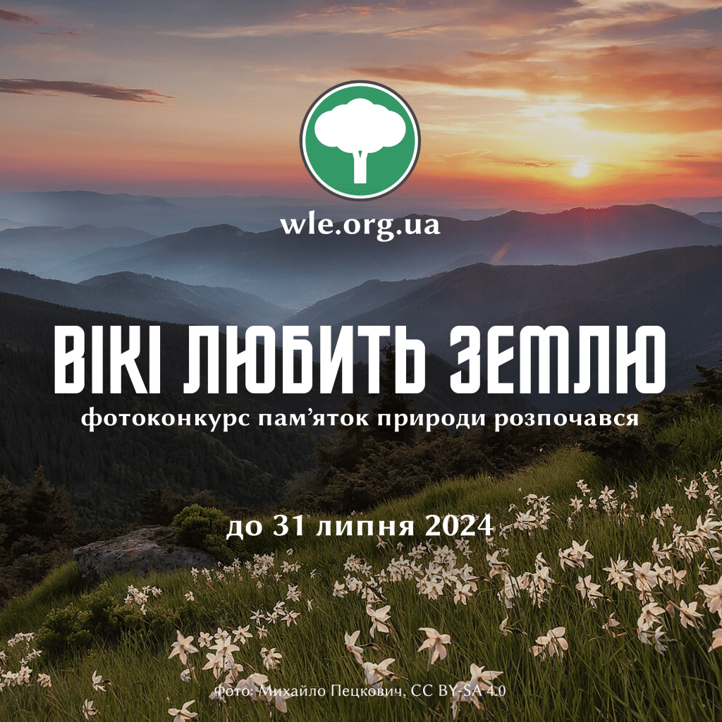 До 31 липня в Україні триває найбільший у світі фотоконкурс памʼяток природи «Вікі любить Землю» (Wiki Loves Earth) 2024. Метою проєкту є зібрати якісні світлини об’єктів природно-заповідного фонду для ілюстрування статей у Вікіпедії.