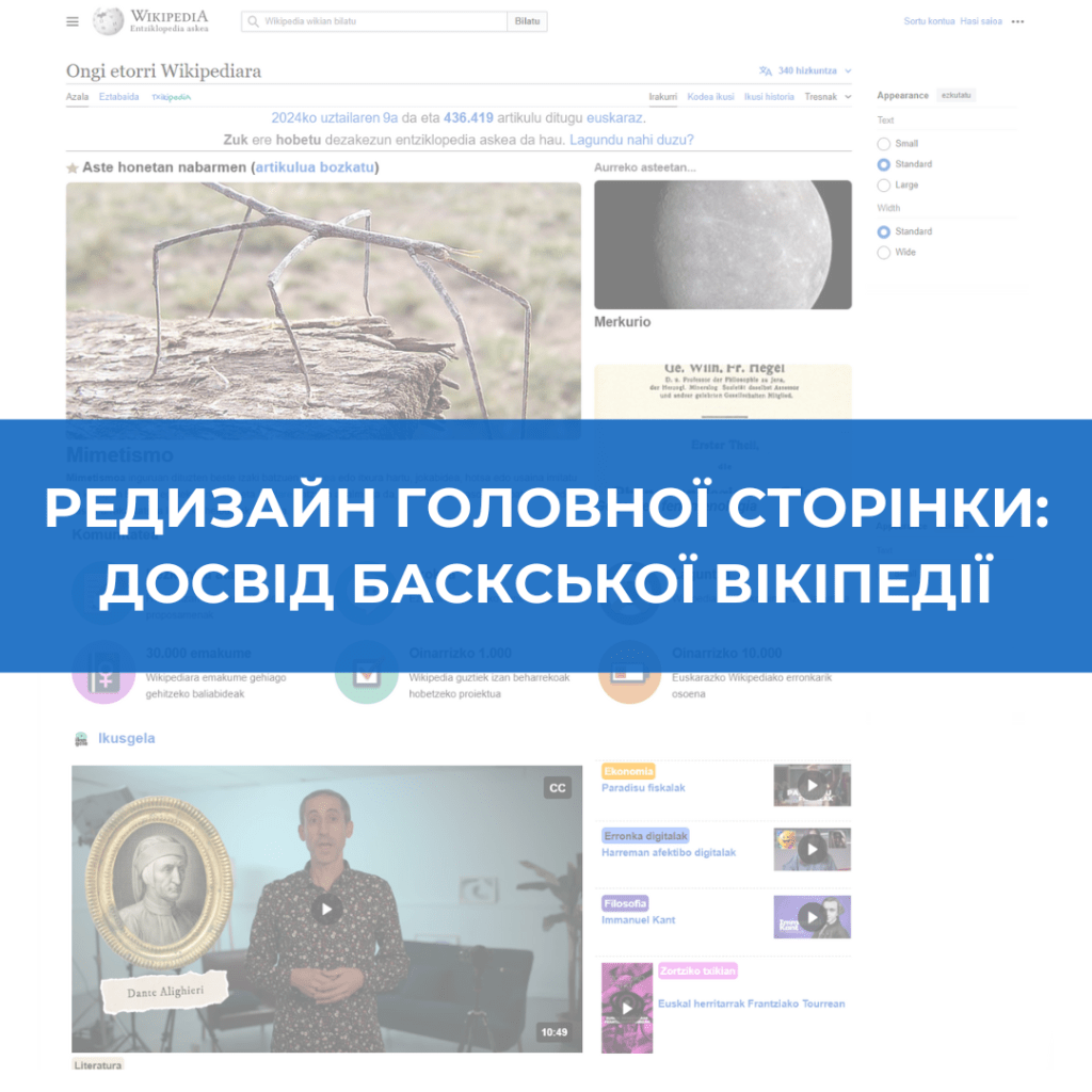 Публікуємо переклад тексту про інноваційний дизайн головної сторінки баскської Вікіпедії, вперше опублікованого на Diff у червні 2024 року. Автор — користувач Theklan. Про досвід редизайну головної сторінки української Вікіпедії читайте за посиланням.