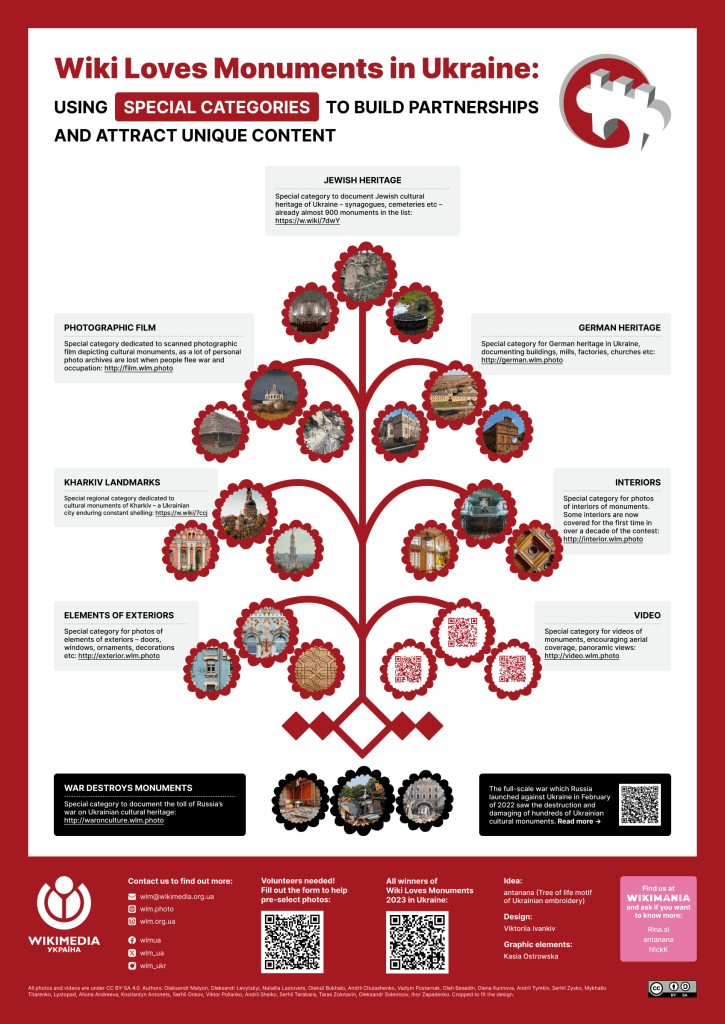 Протягом Вікіманії проходила виставка постерів, на яку люди з різних країн могли подавати свої дизайни, а потім їх друкували та вивішували на стендах під час проведення конференцій. Український постер був присвячений спеціальним номінаціям «Вікі любить пам’ятки». На закритті Вікіманії він отримав нагороду як найкрасивіший серед 36 поданих робіт! Детальніше про історію створення постеру розповімо трохи згодом.