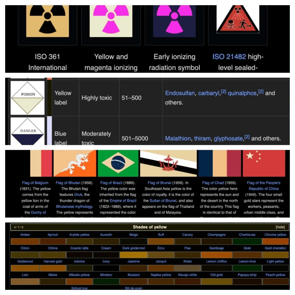 Іноді колір відіграє важливу роль у статтях Вікіпедії. Спершу ми хотіли обрати простішу опцію реалізації темної теми, затемнивши всі кольори на сторінці, але це призвело б до небажаних наслідків. Погляньте на цю статтю про International Orange і зауважте нижче, як зразки кольорів дещо відрізняються в обох статтях.