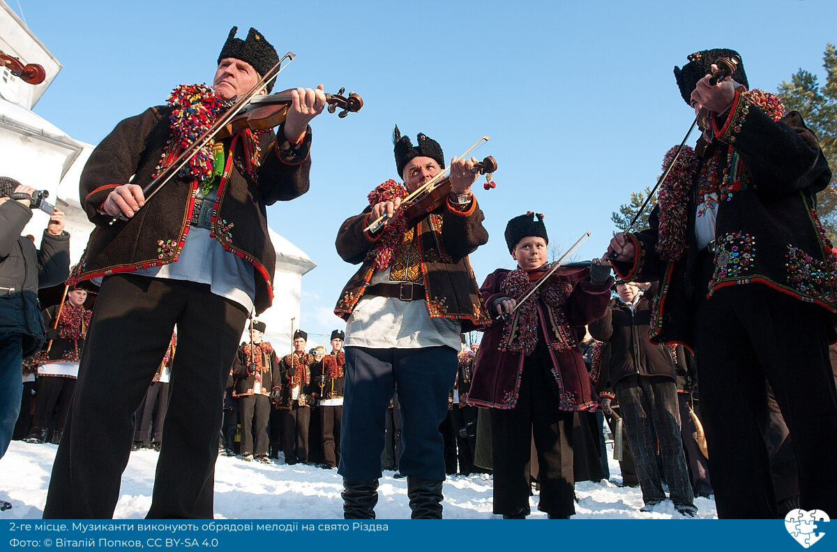 Музиканти виконують обрядові мелодії на свято Різдва.