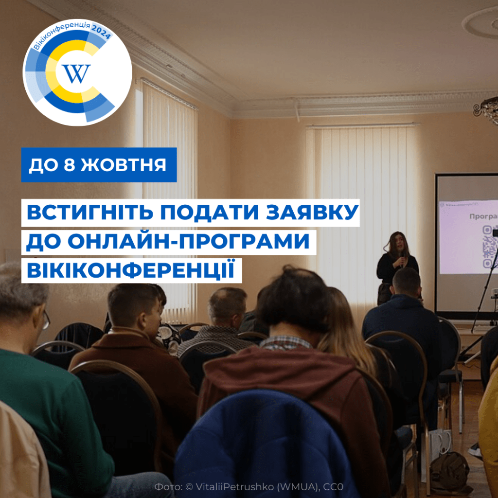 У другій половині жовтня ми проведемо українську Вікіконференцію. До 8 жовтня можна подавати заявки до програми онлайн-днів.