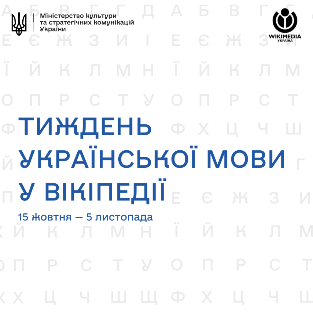 Із 15 жовтня до 5 листопада запрошуємо усіх охочих взяти участь у Тижні української мови у Вікіпедії. Мета — створити та вдосконалити якнайбільше статей на тему української мови й літератури в українськомовному розділі Вікіпедії.