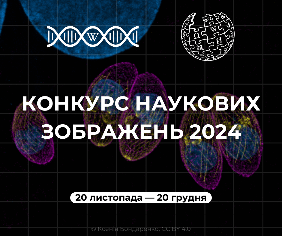 Із 20 листопада до 20 грудня 2024 року у Вікіпедії проведуть щорічний «Конкурс наукових зображень». Мета — зібрати світлини та графічні зображення, які документують світ науки: об’єкти та ефекти досліджень, вчених під час роботи та їх обладнання. Конкурс організовує ГО «Вікімедіа Україна».