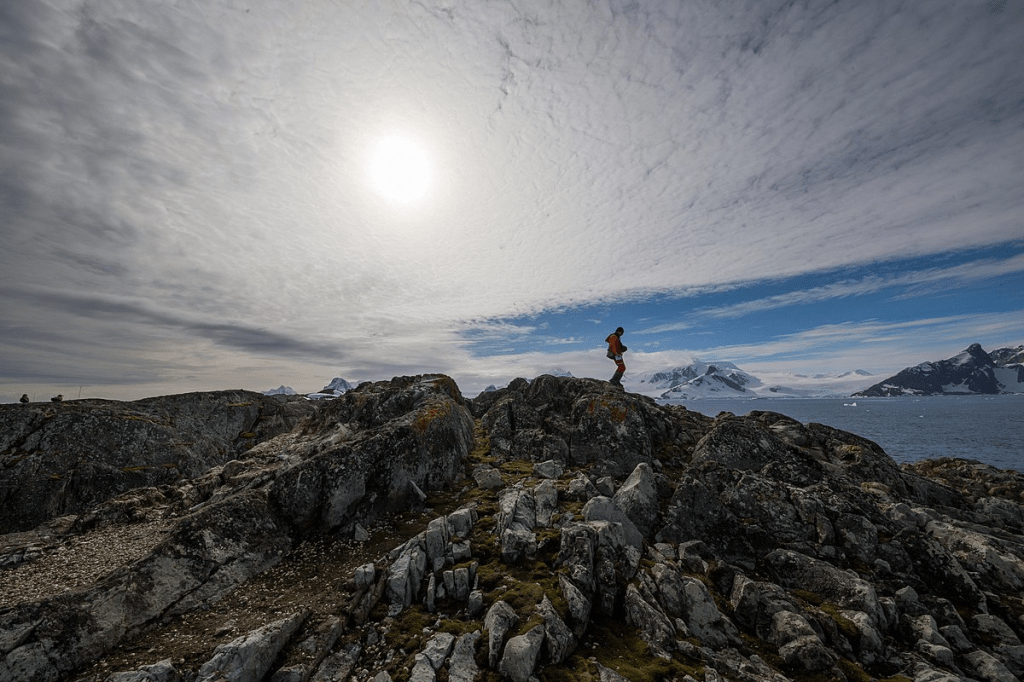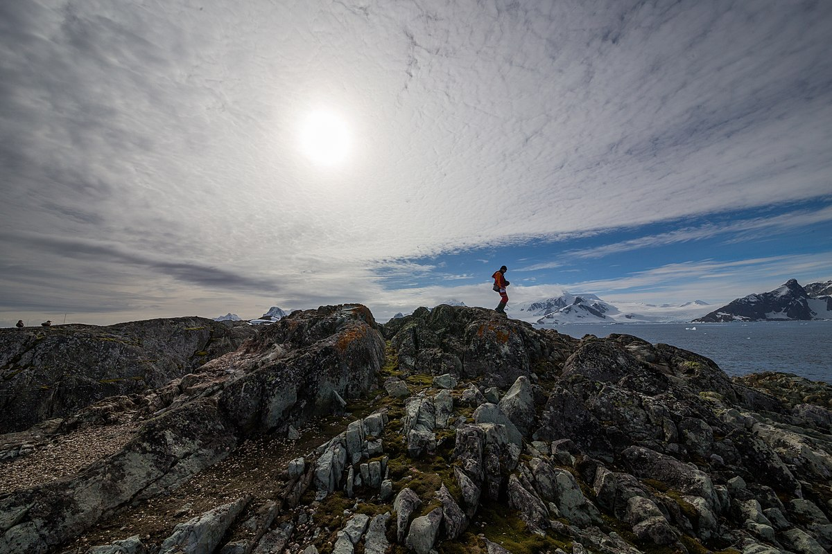 Д.б.н. Іван Парнікоза спускається зі схилу після обстеження покинутого мартинячого гнізда на острові Галіндез, Антарктика. 2 місце у номінації конкурсу 2022 року.