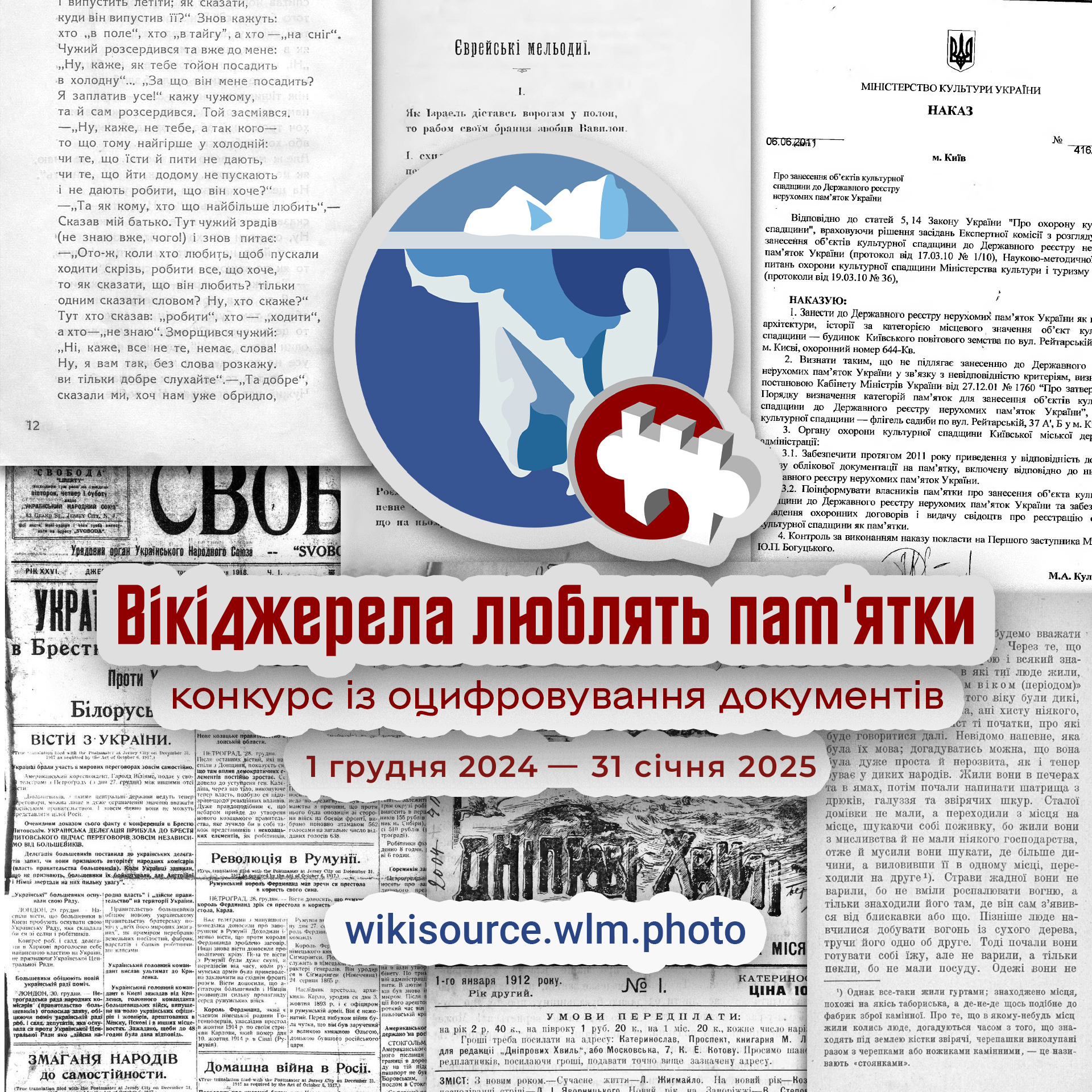Уже вдруге, з 1 грудня 2024 до 31 січня 2025 року, відбудеться конкурс «Вікіджерела люблять пам’ятки», метою якого є оцифрувати документи, що стосуються нерухомої культурної спадщини України та розмістити розпізнані тексти в українському розділі Вікіджерел. Запрошуємо до участі всіх охочих.
