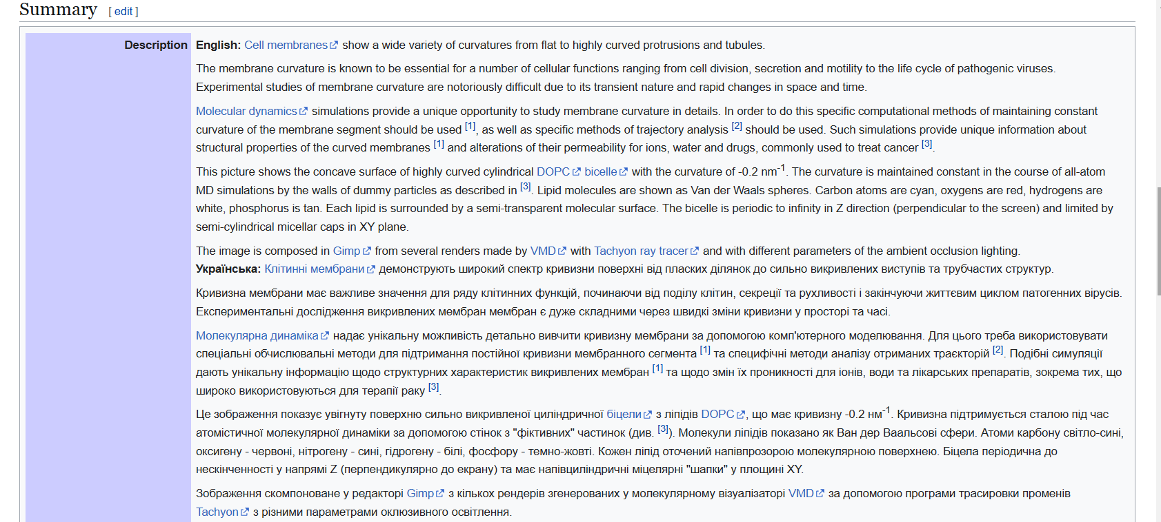 Наприклад, так виглядає опис зображення «Поверхня сильно викривленої ліпідної мембрани отримана за допомогою молекулярної динаміки з фіксованою кривизною». Автор зображення — Семен Єсилевський. Зображення посіло перше місце у конкурсі 2020 року у цій категорії.