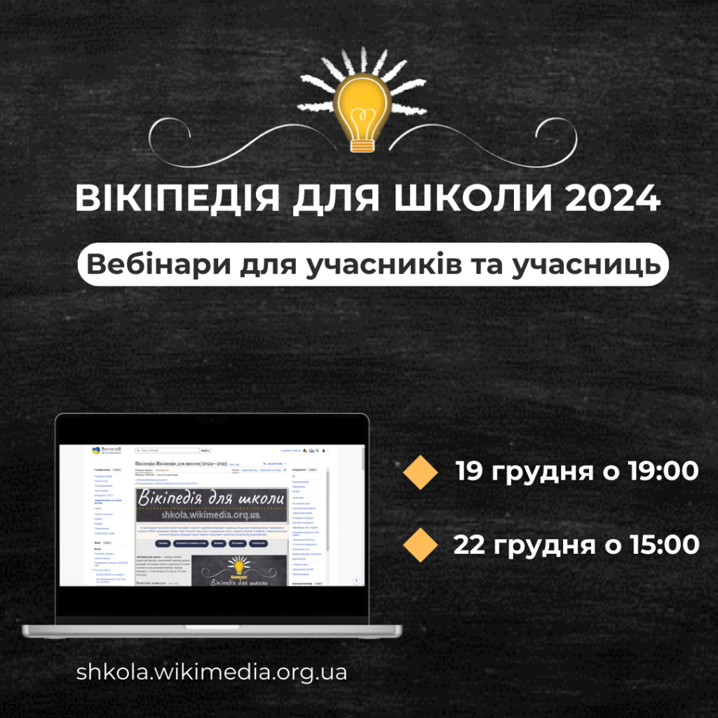 Мета — наповнити Вікіпедію якісними енциклопедичними статтями на теми шкільної програми, які будуть корисними як для учнів та учениць, так і для педагогів.