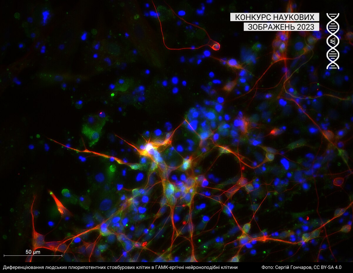 Знімок диференціювання людських плюрипотентних стовбурових клітин в ГАМК-ергічні нейроноподібні клітини Сергія Гончарова увійшов у топ-7 міжнародного заліку.