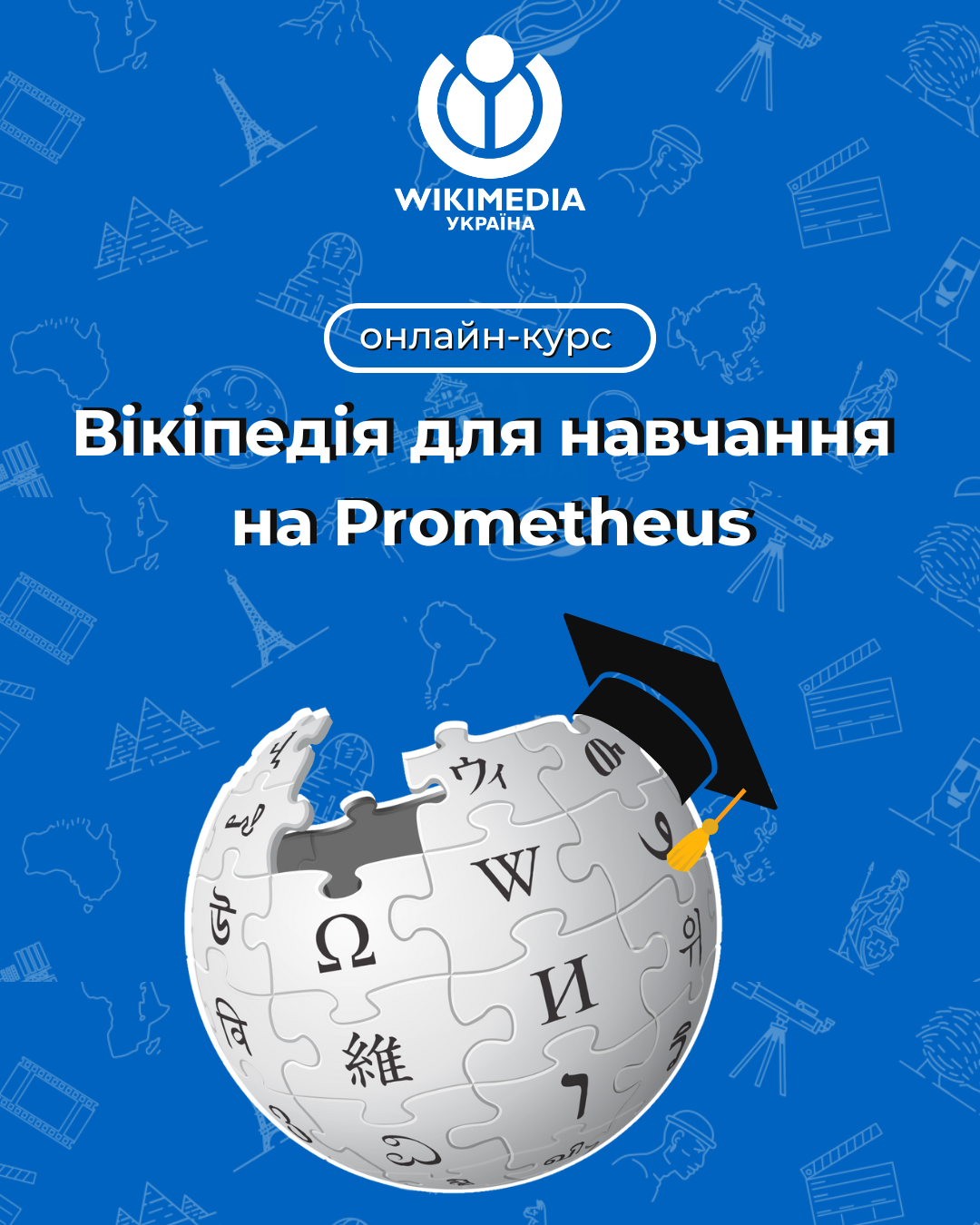 «Вікіпедія для навчання» — це постійно доступний базовий онлайн-курс на освітній платформі Prometheus. Він допоможе зрозуміти Вікіпедію й використовувати її як навчальний інструмент.