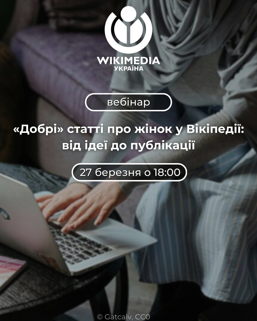Хочете написати якісну статтю про видатну жінку у Вікіпедії? Дізнайтеся, як вибрати тему, працювати з джерелами та що потрібно для того, щоб ваша стаття стала «доброю», на вебінарі 27 березня.