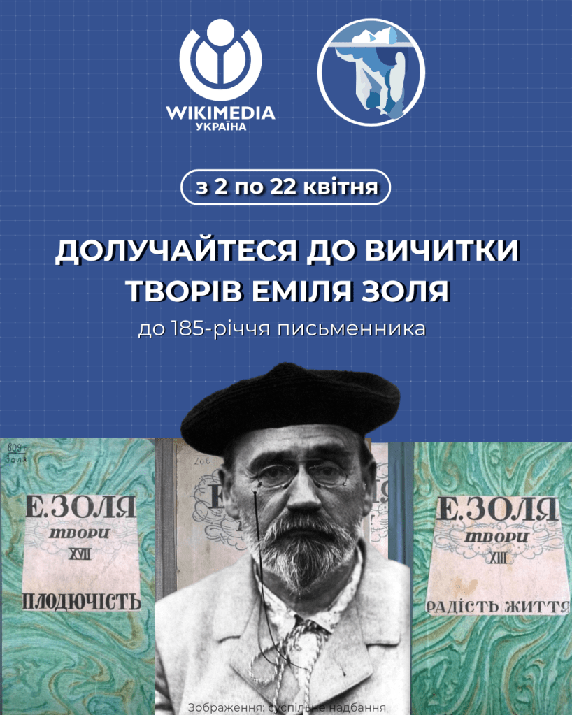 З 2 по 22 квітня долучайтеся до тематичного тритижневика у Вікіджерелах присвячений Емілю Золя.