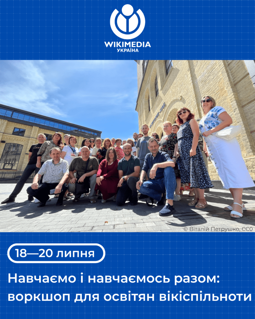 ГО «Вікімедіа Україна» запрошує на триденну літню зустріч освітян, які вже інтегрують Вікіпедію у свою професійну діяльність. Цей захід — простір підтримки, натхнення та обміну досвідом, можливість для знайомства та довірливої комунікації