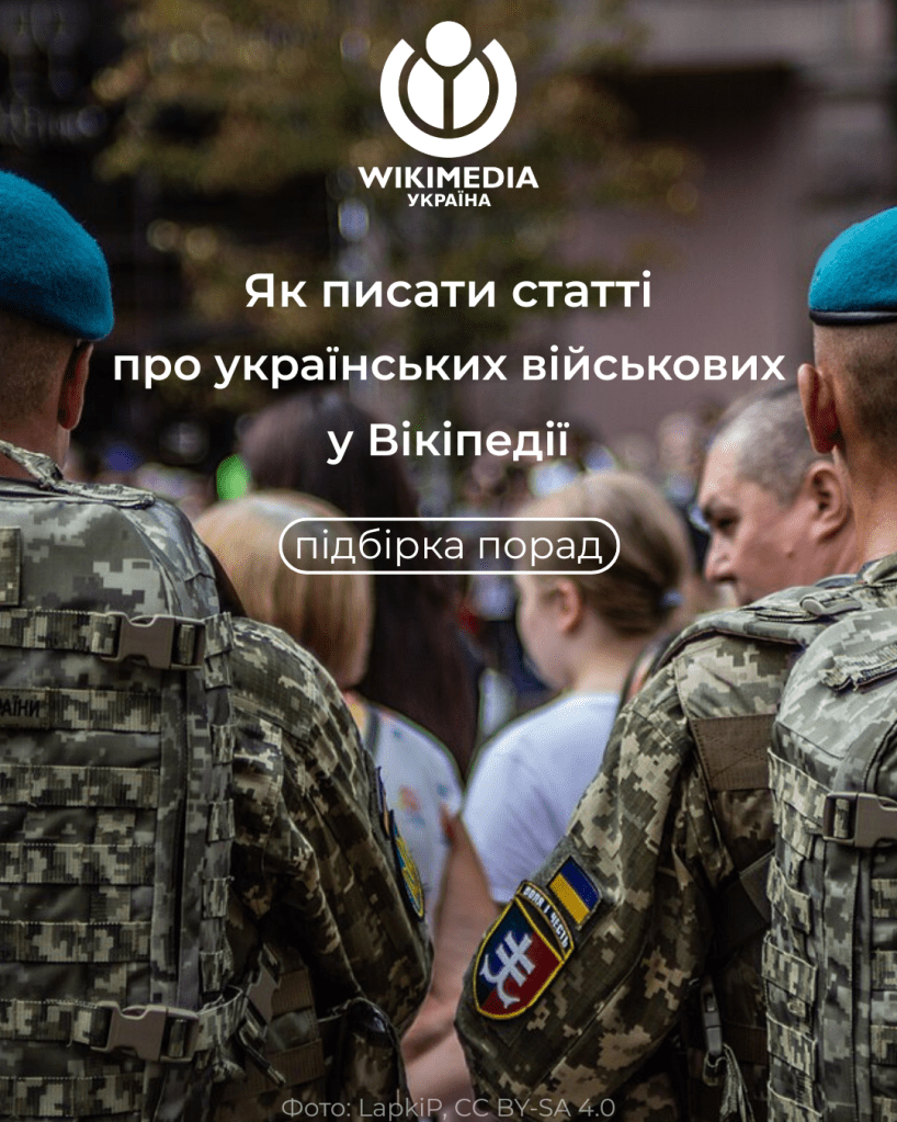 Вікіпедія може бути важливим простором для збереження пам’яті про українських воїнів. Разом з цим, як і в будь-якої іншої платформи, у неї є свої правила. І створення статей у Вікіпедії як енциклопедії передбачає ретельну перевірку фактів, посилання на авторитетні опубліковані джерела та обережність у висвітленні чутливих тем.