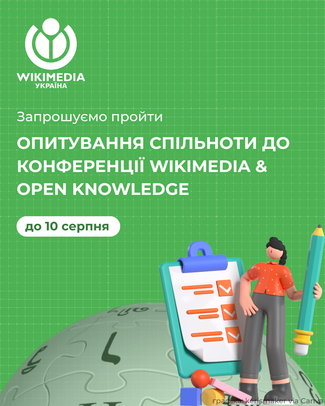 Тож якщо вас цікавить тематика дослідження Вікіпедії/Вікіданих/інших вікіпроєктів (або досліджуєте самі, або просто цікавитеся з точки зору вікіпедиста/ки), просимо вашої допомоги — пройдіть опитування до 10 серпня (включно) за посиланням.