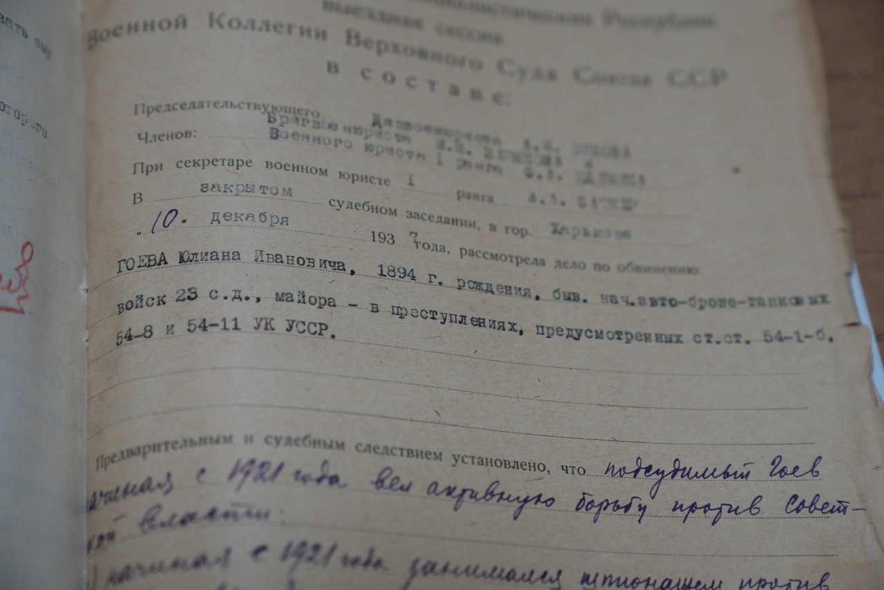 Згодом, зйомки продовжили в Івано-Франківському краєзнавчому музеї, де є сімейні реліквії Гоївих, включно з фото Юліана Гоїва та Євгена Коновальця в російському полоні в серпні 1915-го року. Особливо цінним було те, що в івано-франківському архіві СБУ пішли на зустріч для зйомок цього сюжету. Управління дозволило продемонструвати справу Юліана в сюжеті — це було потрібно, адже без неї передати атмосферу радянських репресій 1937-го року було б неможливим.