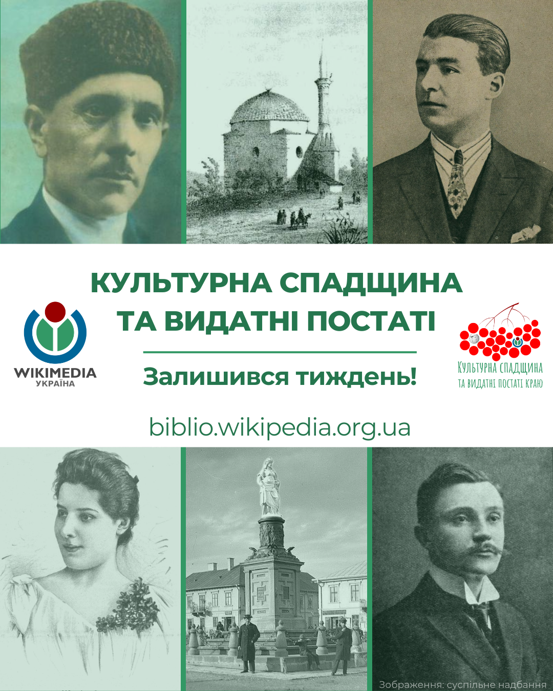 До 3 серпня запрошуємо бібліотекарів, бібліотекарок та всіх охочих долучитися до створення та поліпшення статей у Вікіпедії про українську культурну спадщину та визначних особистостей.