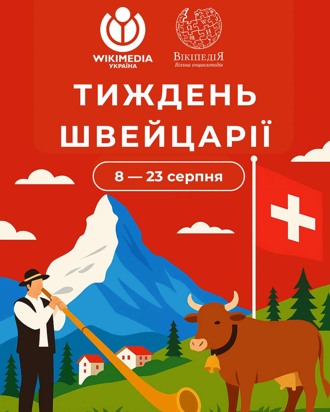 З 8 по 23 серпня в українській Вікіпедії проходитиме Тиждень Швейцарії — тематична акція, присвячена покращенню та написанню статей про Швейцарію, її культуру, історію, особистостей тощо.
