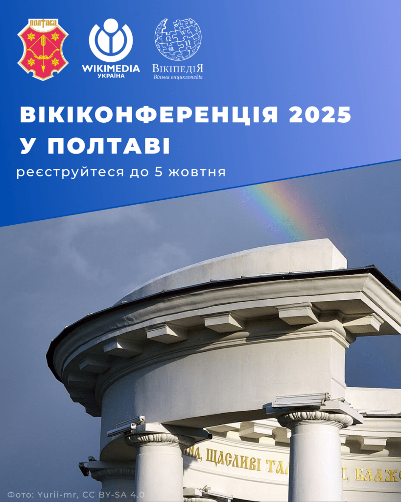 Вікіконференція — це найбільша щорічна подія української вікіспільноти. У 2025 році окрім онлайн-днів та основної офлайн-події у Києві, 19 жовтня у Полтаві відбудеться локальна зустріч для вікіпедистів(-ок) Полтавщини.