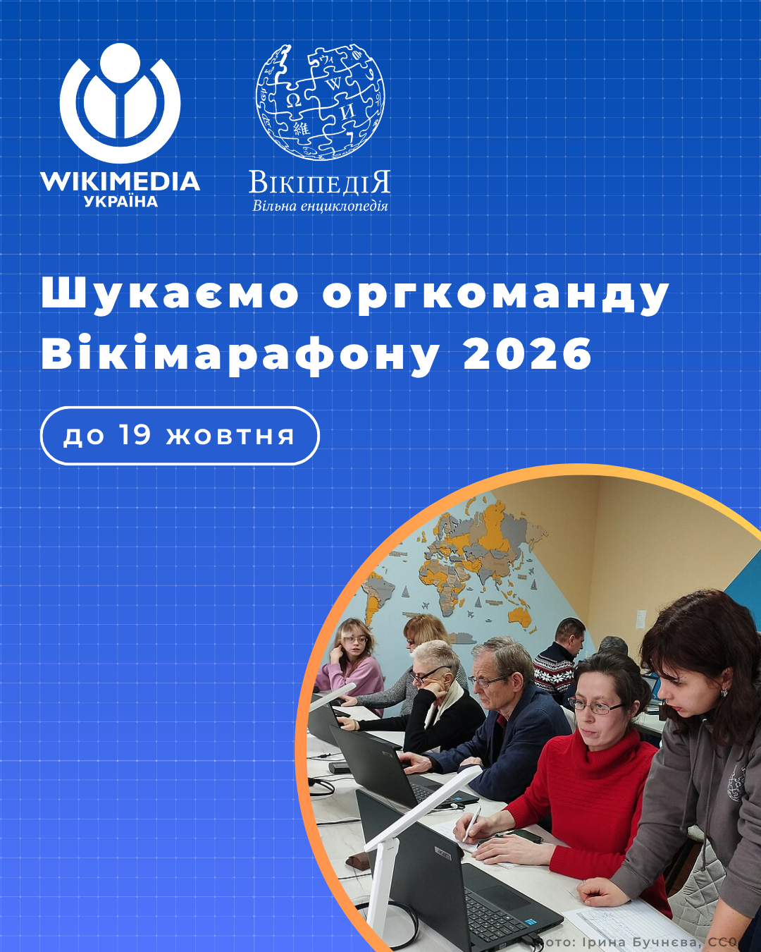 Зверніть увагу: Вікімарафон 2026 ми плануємо розпочати і провести раніше, ніж зазвичай — не в кінці січня, а ближче до початку-середини місяця: навколо глобального дня народження Вікіпедії, який припадає на 15 січня. Тому ми розпочинаємо підготовку завчасно.