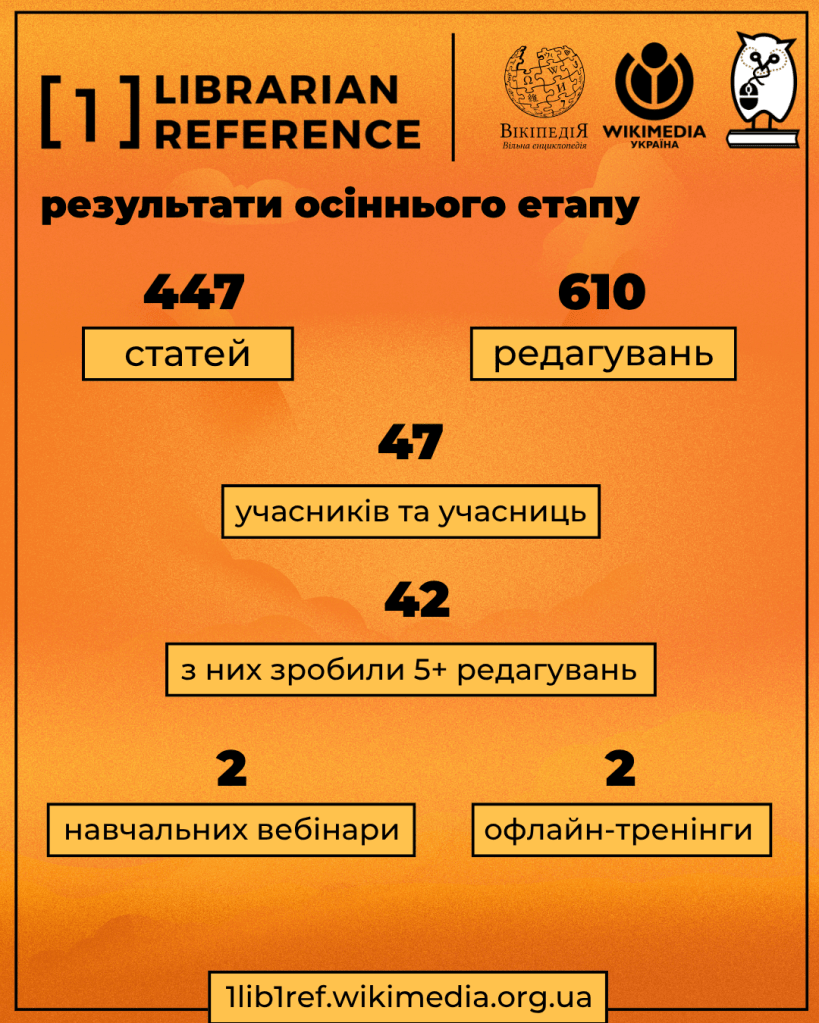 Дякуємо всім, хто долучився до кампанії #1Lib1Ref! Ви допомагаєте Вікіпедії залишатися відкритою, достовірною й корисною для кожного.